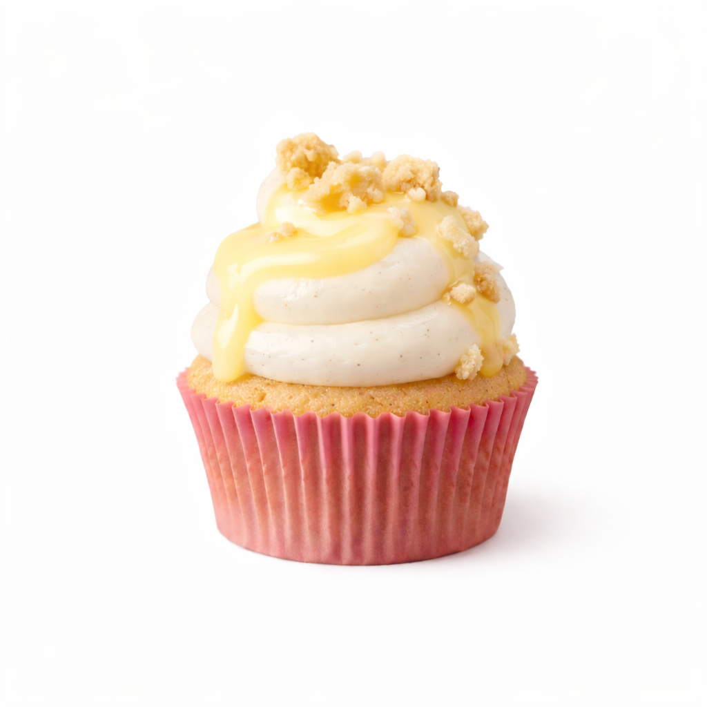 Light vanilla bean cake meets smooth vanilla pudding, swirled high with speckled vanilla bean buttercream and finished with buttery sugar cookie crumble. Sweet, creamy, and perfectly nostalgic — like sunshine in cupcake form.
